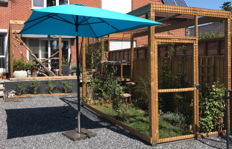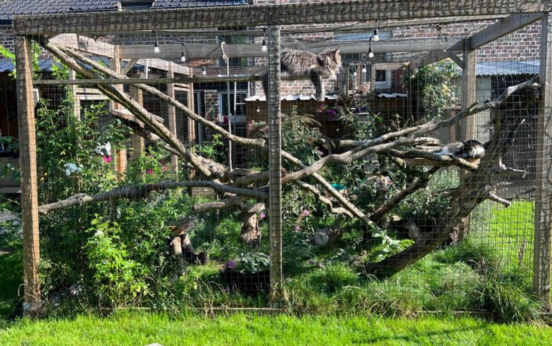 Voor mij is het uiterst belangrijk dat onze katten kunnen spelen en genieten in een natuurlijke omgeving. De katten krijgen frisse buitenlucht en extra bewegingsruimte door een buitenren. Onze ren is voorzien van klim-, klauw- en speelmogelijkheden. Er is gras om in te liggen en heeft schuilmogelijkheden in de vorm van katveilige planten. De ren is gebouwd van mooi tuinhout en met een sterke draad met 50mm x 50mm gaatjes. Alles is mooi tot in detail dicht gemaakt, ook de bovenkant is voorzien van deze sterke draad.